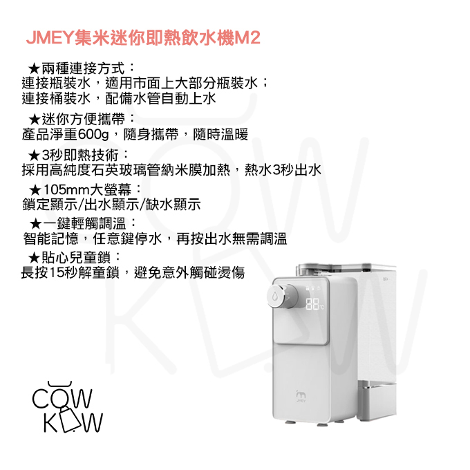 更多商品詳情:https://www.cowkow.com/products/jmey-mini-instant-water-dispenser-m2