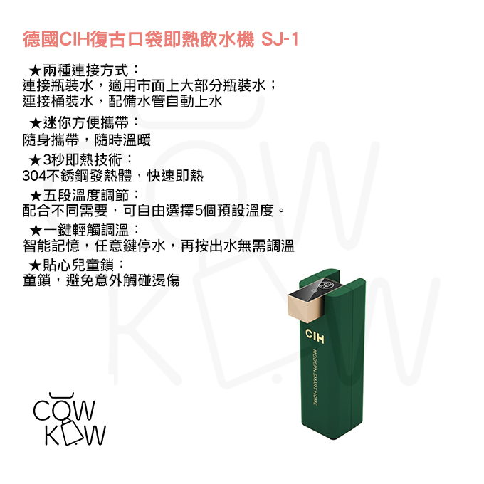 更多商品詳情:https://www.cowkow.com/products/german-cih-retro-pocket-instant-hot-water-dispenser-sj-1