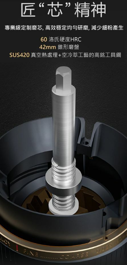 Essence機身採用航空級鋁材⚙️,配備專業級研磨芯和38mm高碳鋼錐形毛刺,磨盤則使用左鍍釱工藝高碳鋼,打造出最高規格磨豆機。無線充電設計🔋,無論露營🏕️、野餐⛺、去旅行✈️都可以品嚐到濃厚既咖啡。