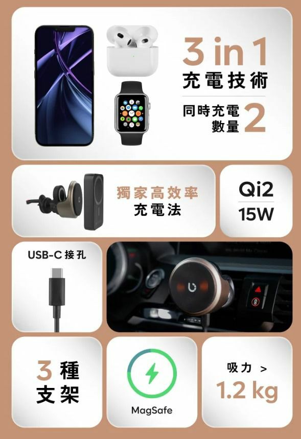BEZALEL全新推出車用磁吸無線充電器Omnia X MagSafe,採用Qi2充電技術,提供「真」15W充電速度,普通車用充電器在駕駛途中很容易掉落,而Omnia X MagSafe有高達1.2kg吸力,轉彎、急停都同樣固定。