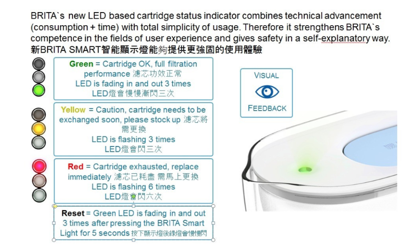 德國品牌 - BRITA (碧然德), 智慧型 2.4L 濾水壺內附德國製造 Maxtra+ 濾芯, 配置 LED 濾芯顯示燈; 能有效過濾有害金屬如鉛及氯氣, 而仍可保水中的礦物質