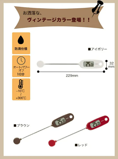 具有時尚色彩的烹飪溫度計,具有 IPX2 防滴功能,即使弄濕也沒關係