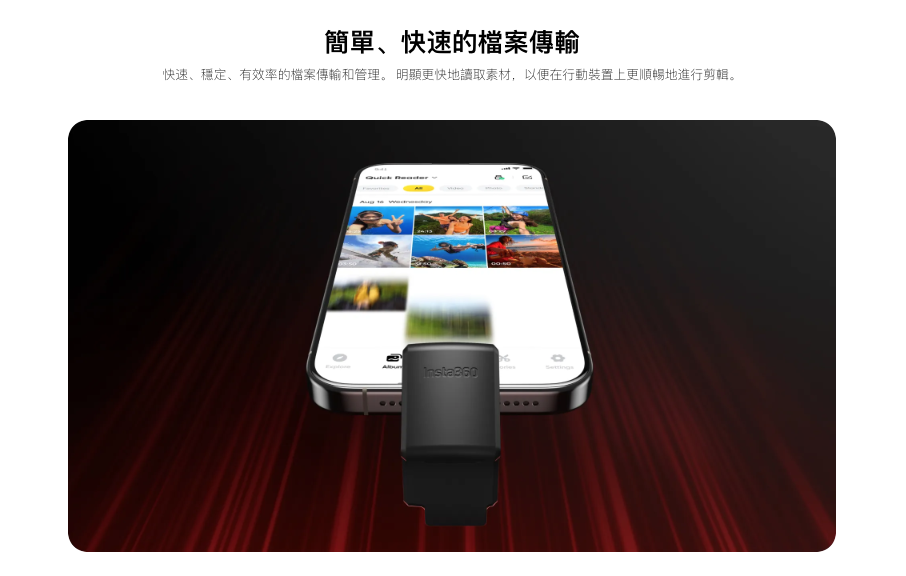 直接連接到您的智能手機,大幅減少 SD 卡讀取時間,從而加快編輯和檔案管理速度。