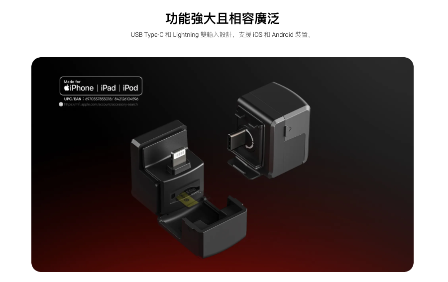相容於 iOS(Apple MFI 認證)和 Android 裝置。