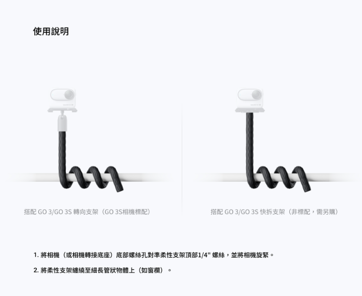 注意:當本產品與 Ace Pro & Ace 一起使用時,使用者必須購買單獨出售的快拆支架或三插腳轉 1/4" 轉接器。