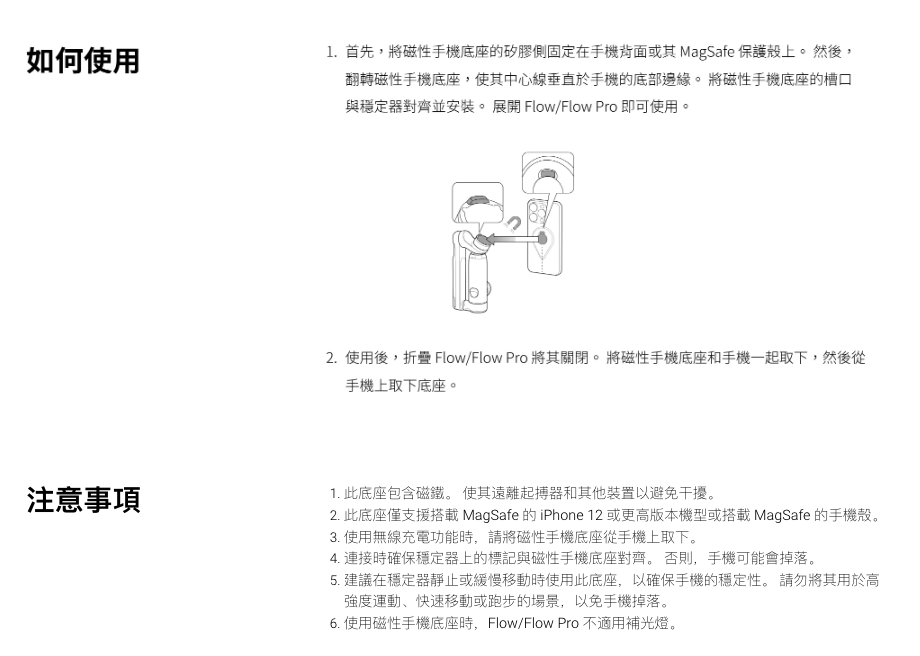 將手機連接到 Flow/Flow Pro 即可進行即時、流暢的拍攝。 用作磁性手機夾的替代品。