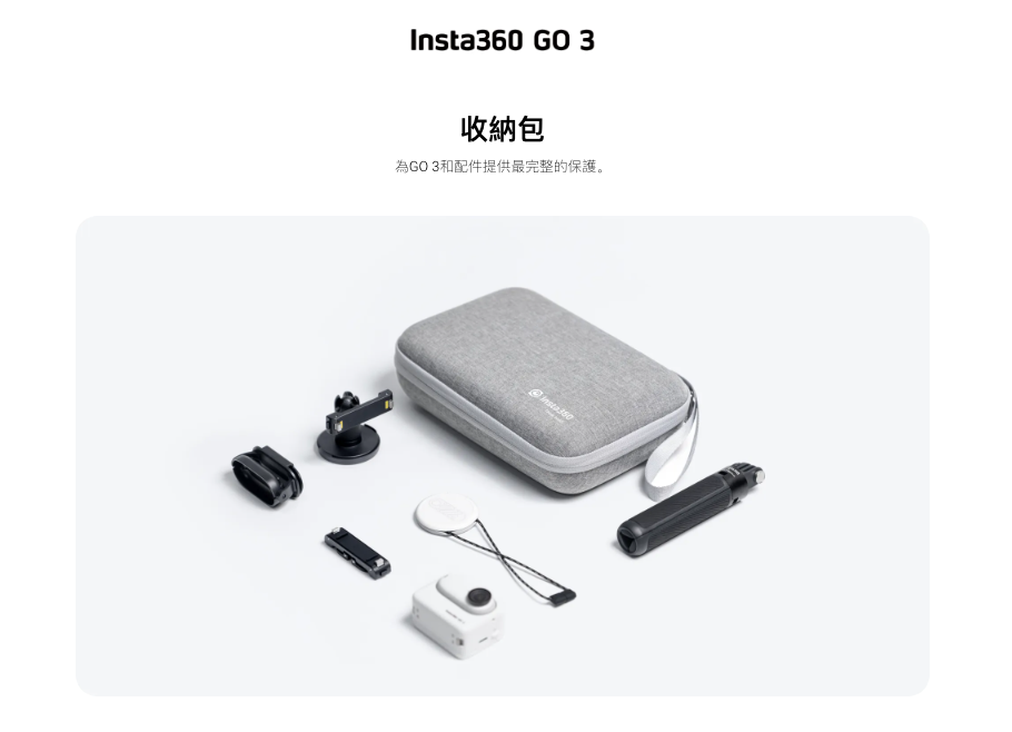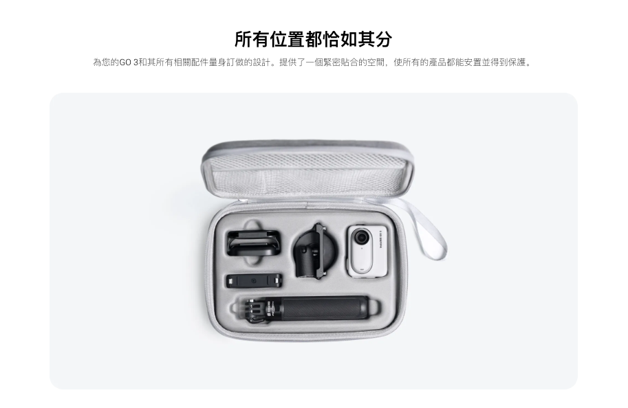 為GO 3和隨附配件精準設計,加上迷你腳架和快拆支架。