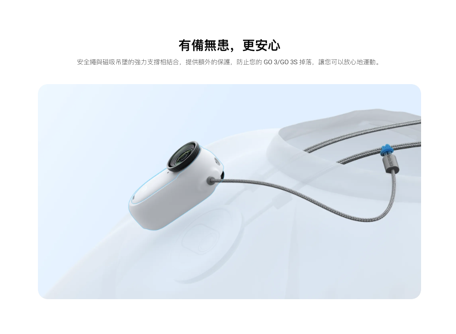 堅固的橡膠磁吸吊墜安全繩,可防止相機從磁吸吊墜掉落時遺失。