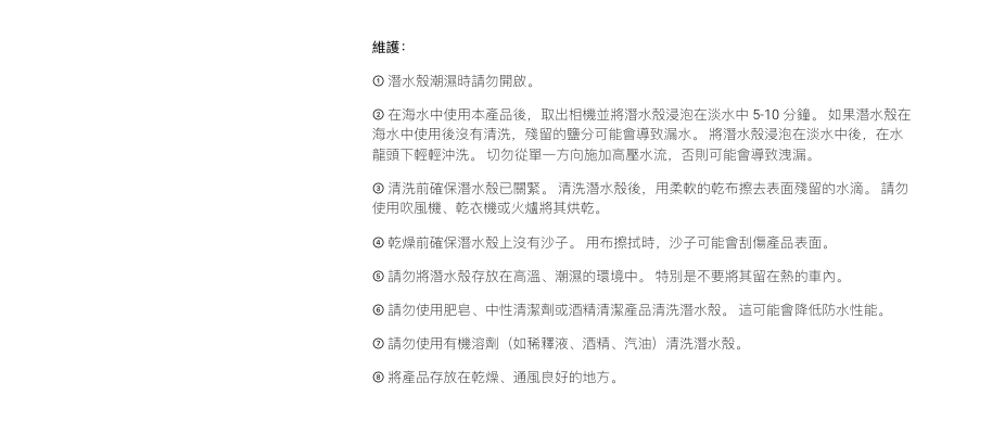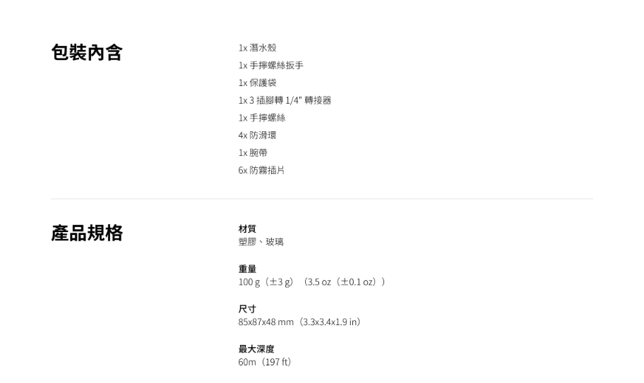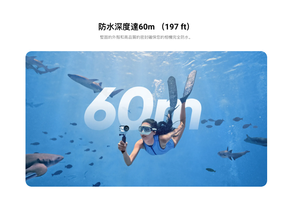 配有潛水殼,防水深度可達60米 (197 英呎)。