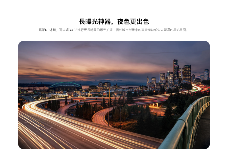 可拍攝長時間曝光鏡頭和獨特的效果,如城市光跡和星光軌跡。