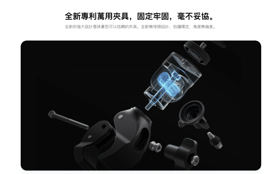 全新通用強力夾具,可將您的相機牢固地固定在車把、保險槓等上。