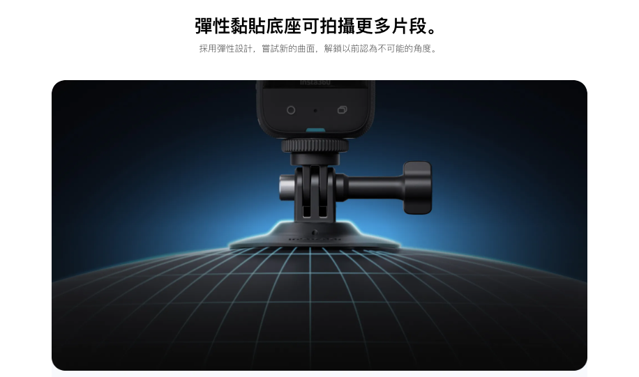彈性黏貼底座,完美貼合您的頭盔、油箱或擋風玻璃,解鎖更多拍攝角度。
