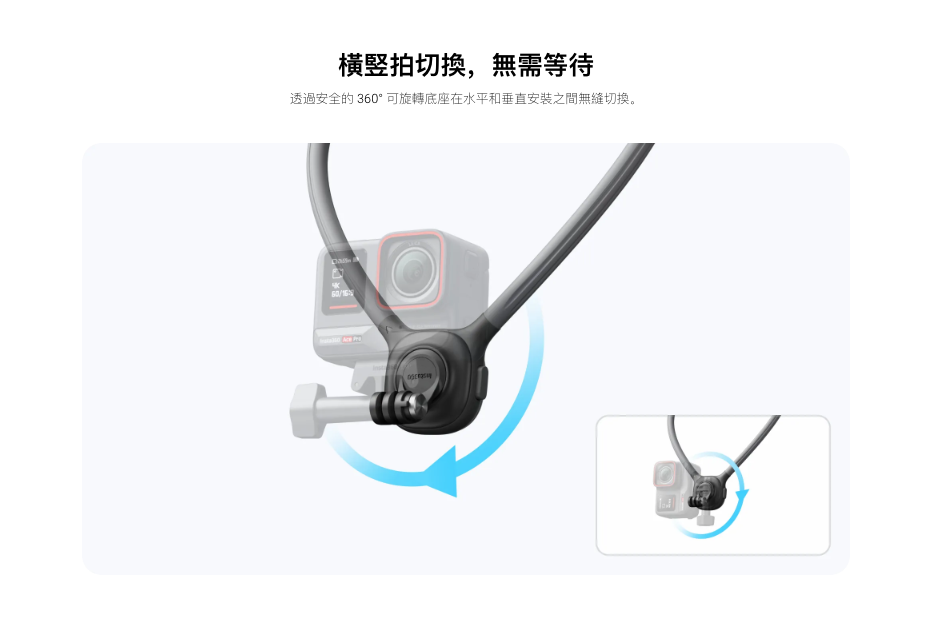 360° 可調式底座可在水平和垂直安裝之間快速、簡單地切換。