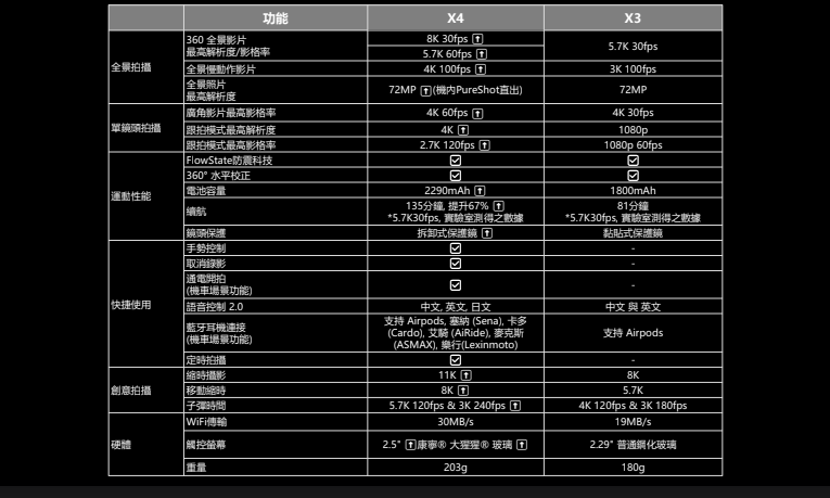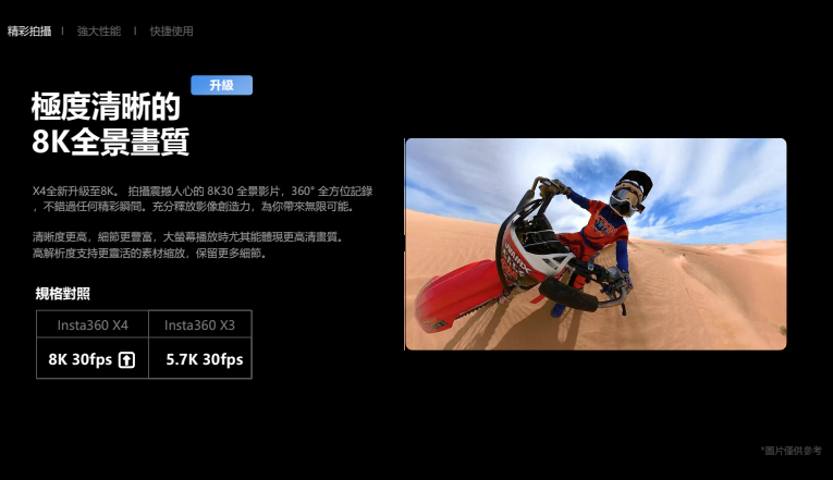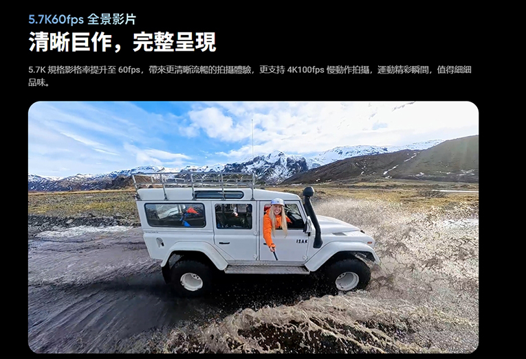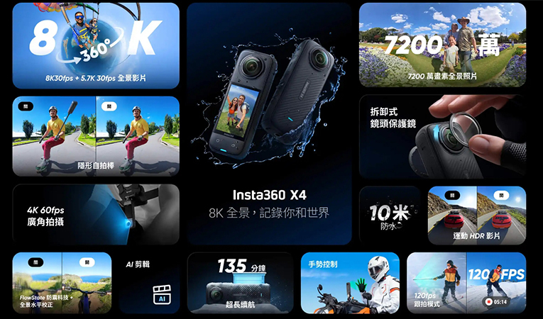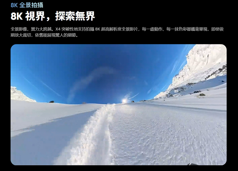 X4全新升級至8K。 拍攝震撼人心的 8K30 全景影片,360° 全方位記錄