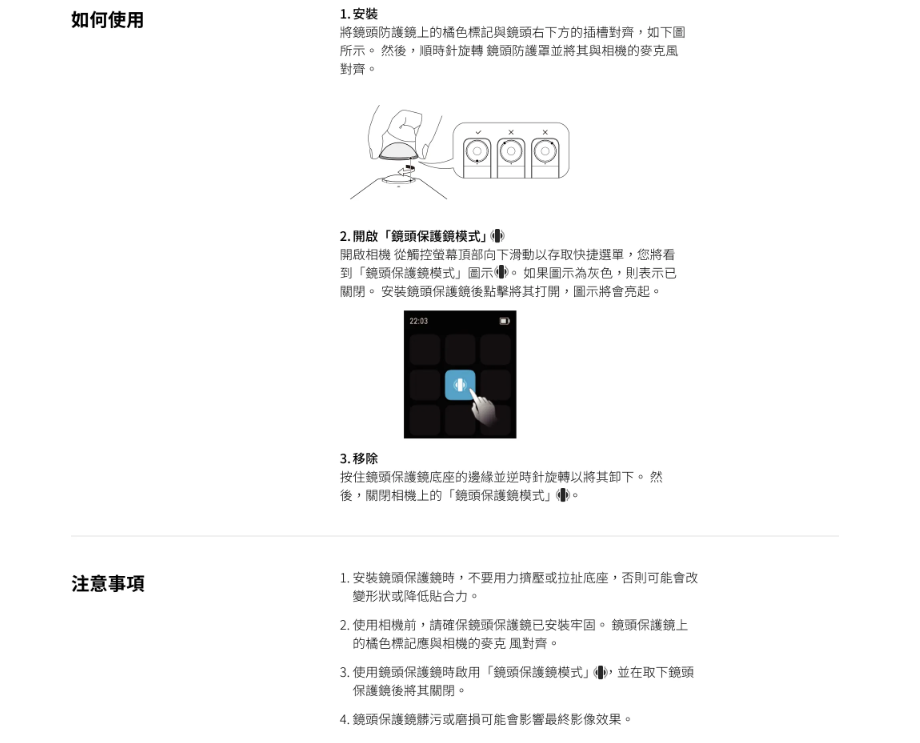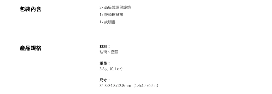 堅固且易於使用的強化玻璃鏡頭保護鏡可全面防止碰撞和刮擦。