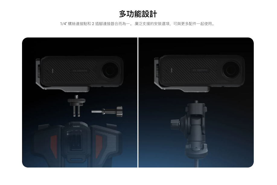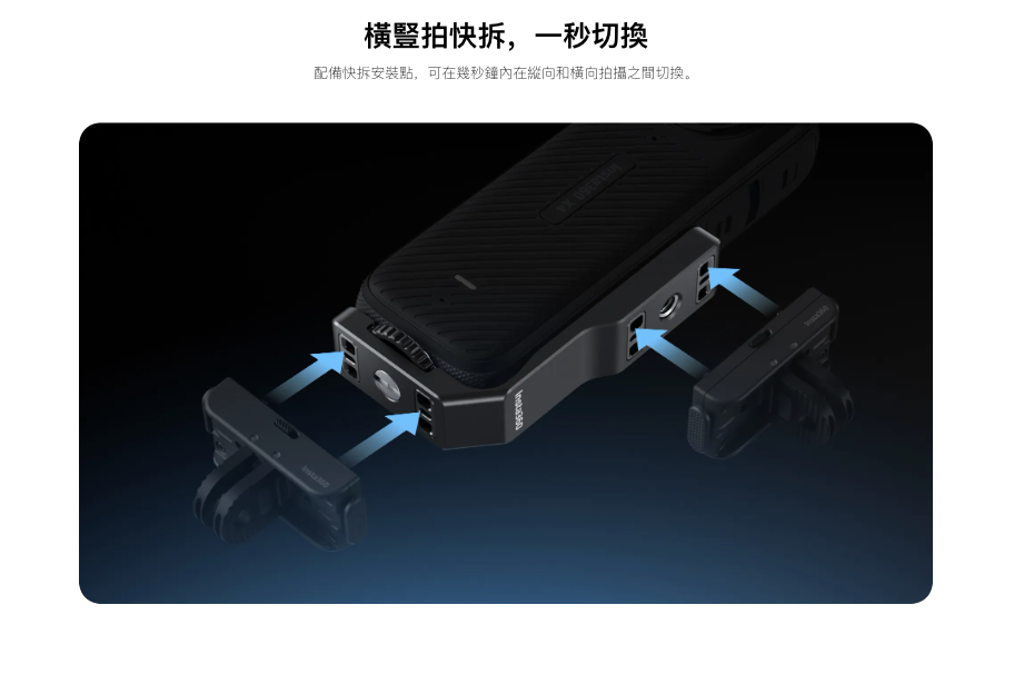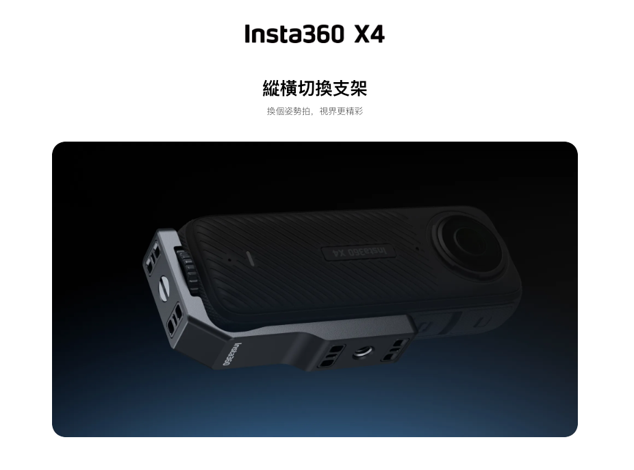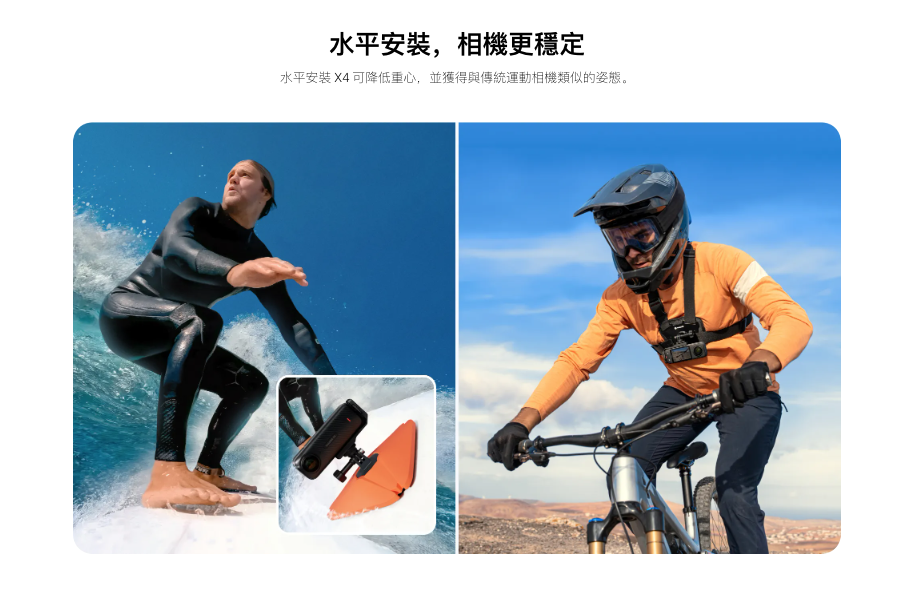 水平安裝 X4 以降低重心,類似傳統運動相機。