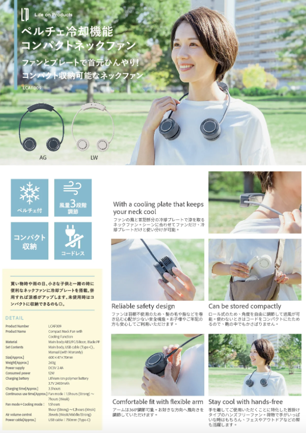 創新的多功能掛頸扇,捲筒式頸帶設計,可以捲起收納放手袋或背囊,方便攜帶;無扇葉設計可減少頭髮或手被夾住的可能,安全可靠。獨立風扇及冷卻功能,可以選擇單獨使用風扇或僅用冷卻板功能助您迅速降溫。360° 可自由調節角度,超靚日系簡約設計,絕對是夏天運動最佳風扇之選。