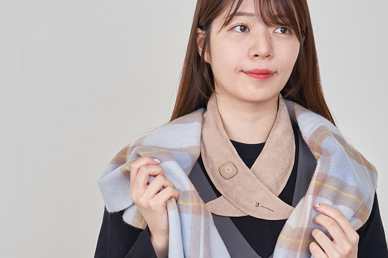 日本Life on Products LCAWA018充電式發熱圍巾,告別臃腫!僅0.13cm厚度及僅約70g超輕量設計,佩戴於外套內隱形不顯眼。三段溫度調節(40/45/50°C),磁吸扣兩段長度調節,貼合不同頸形。無線設計讓您活動自如。三款氣質色系,輕鬆搭配冬日造型,兼顧溫暖與時尚,是您上班、出行的保暖必備。