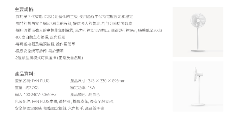 全新的 SLIM-EDGE FAN 設計, 純白簡約, 體積小