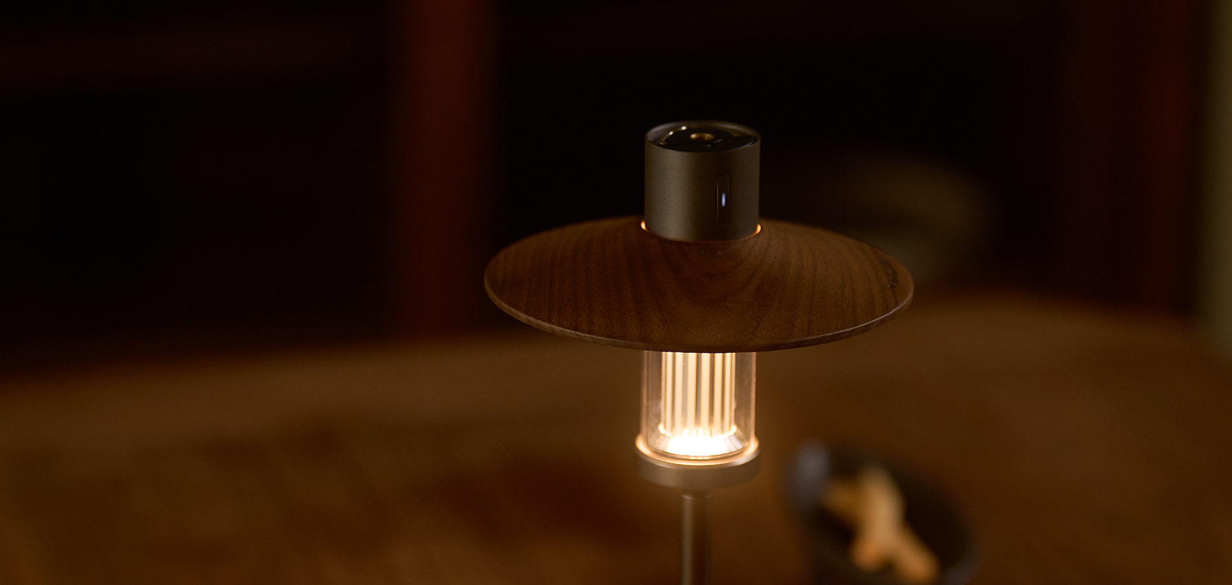 特別版加入復古浪漫設計,木製燈罩,配合棕啡色燈及鋁 合金支架,支架有兩個高度自由配合,除露營外,可以當 枱燈放屋企,營造悠閒懷舊氣氛