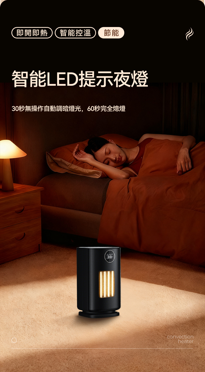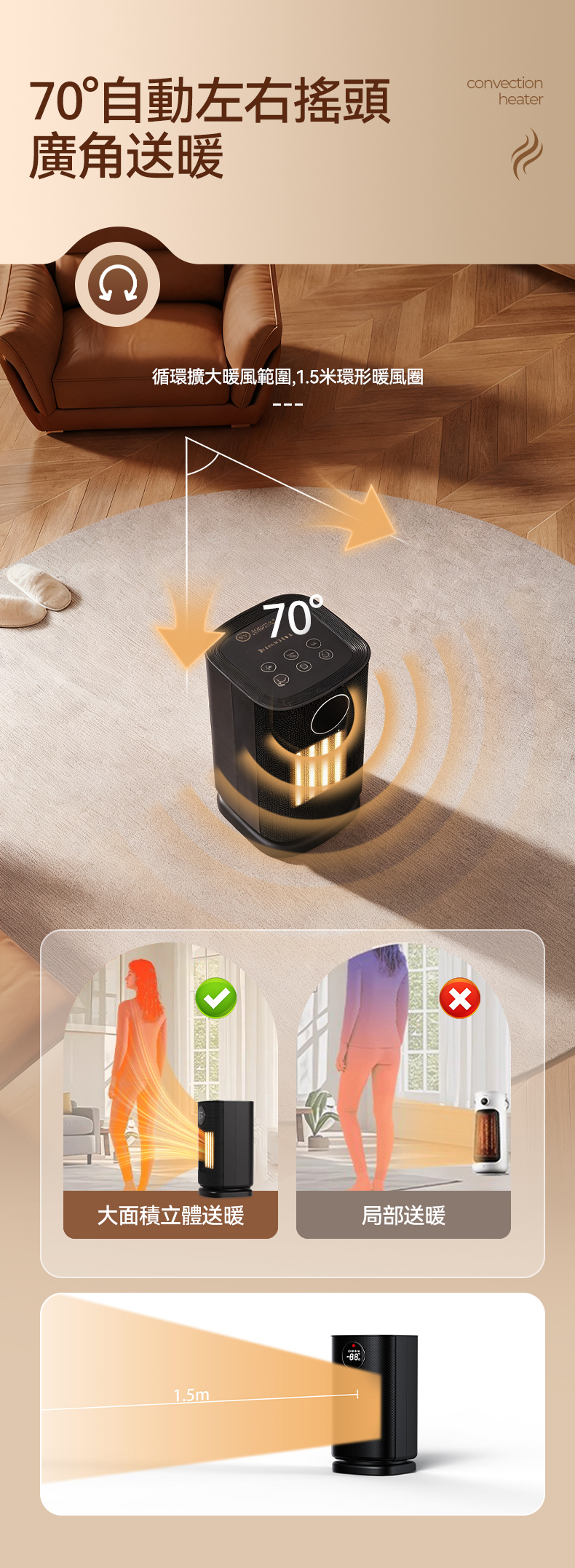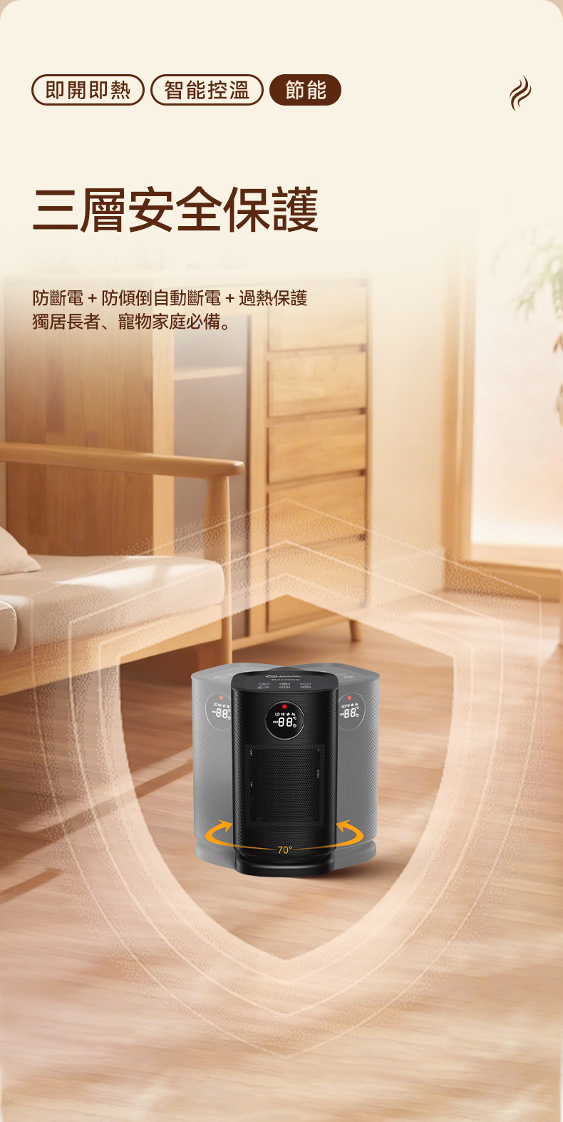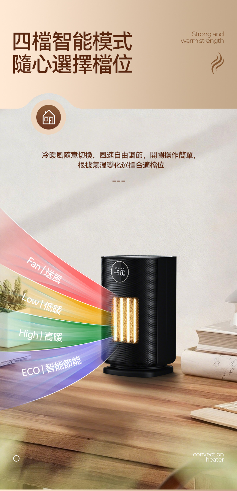 MACHINO 新出H9智能暖風機!搭配PTC陶瓷速熱,極速加暖。配備四檔智能模式(送風/低暖/高暖/ECO節能),18-35℃精準溫控隨心調節。70°自動搖頭擴大送暖範圍,打造1.5米環形暖風圈!1-12小時預設關機+三重安全保護(防斷電、傾倒斷電、過熱保護)搭配遙控與觸屏雙操控,安全便捷,暖意覆蓋每個角落,讓您在冬天也能打造溫暖舒適環境。