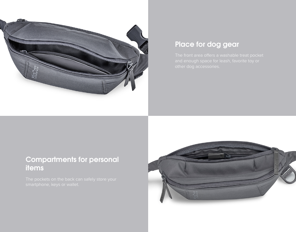 腰包捲土重來! 我們的 Cinta 斜挎包時尚、用途廣泛且非常實用。 Cinta 可掛在臀部、腰部或作為斜挎包隨意佩戴,為您的狗狗提供日常生活中必不可少的物品的足夠空間。