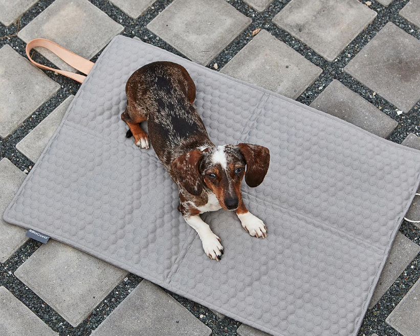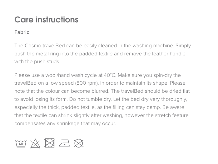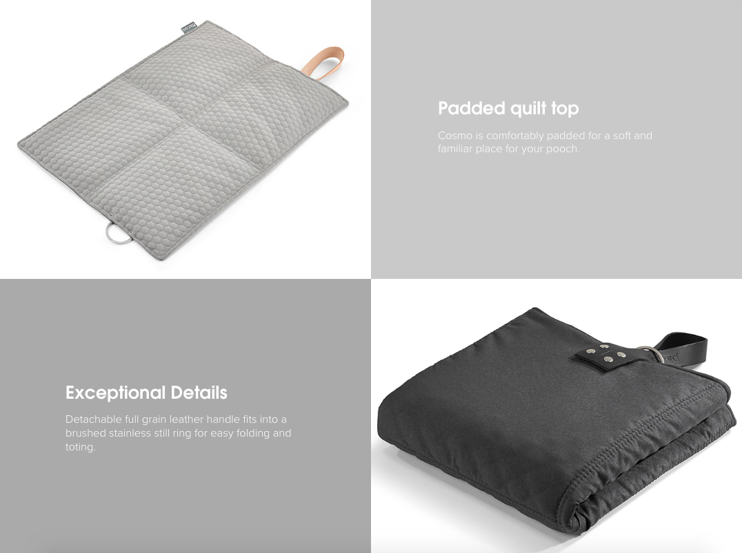 Cosmo travelBed 由荷蘭設計師 Regina Mol 設計,配有帶蜂窩圖案的舒適軟墊棉被頂部和防水帆布底部。 別緻的全粒面皮革手柄適合拉絲不銹鋼靜止環,便於折疊和攜帶。
