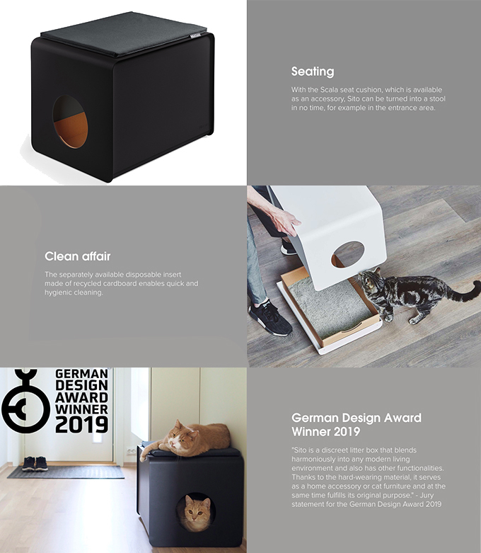 創新材料鋁為其提供了用作座椅或擱板所需的穩定性。 貓砂盆內完美貼合、可堆肥的嵌件為您的貓提供足夠的空間轉動和抓撓,省去清潔的麻煩。