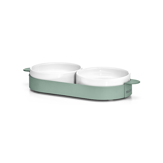 放置在粉末塗層金屬托盤中,由優質瓷器製成的食物和水碗可以安全方便地盛放。