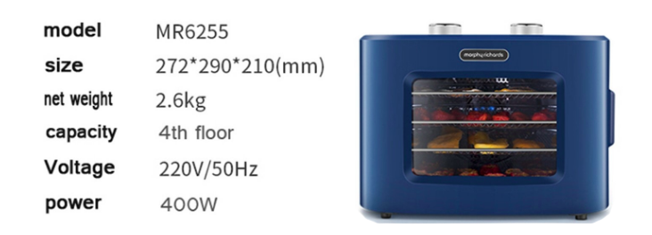 由英國百年小家電品牌Morphy Richards推出的一款零食神器—Morphy Richards乾果機,可自己在家輕鬆製作各種健康零食、乾果,不用再擔心各種添加劑和高熱量,好吃、衛生又不怕胖。