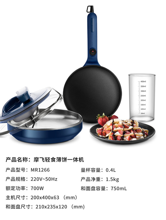 E型均勻加熱,PP麵糊托盤,20秒製作薄煎餅