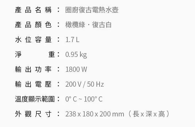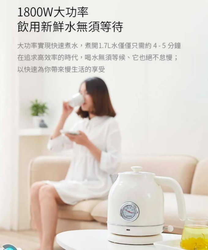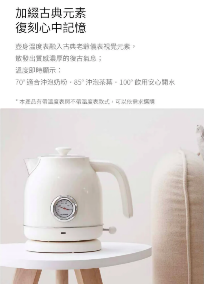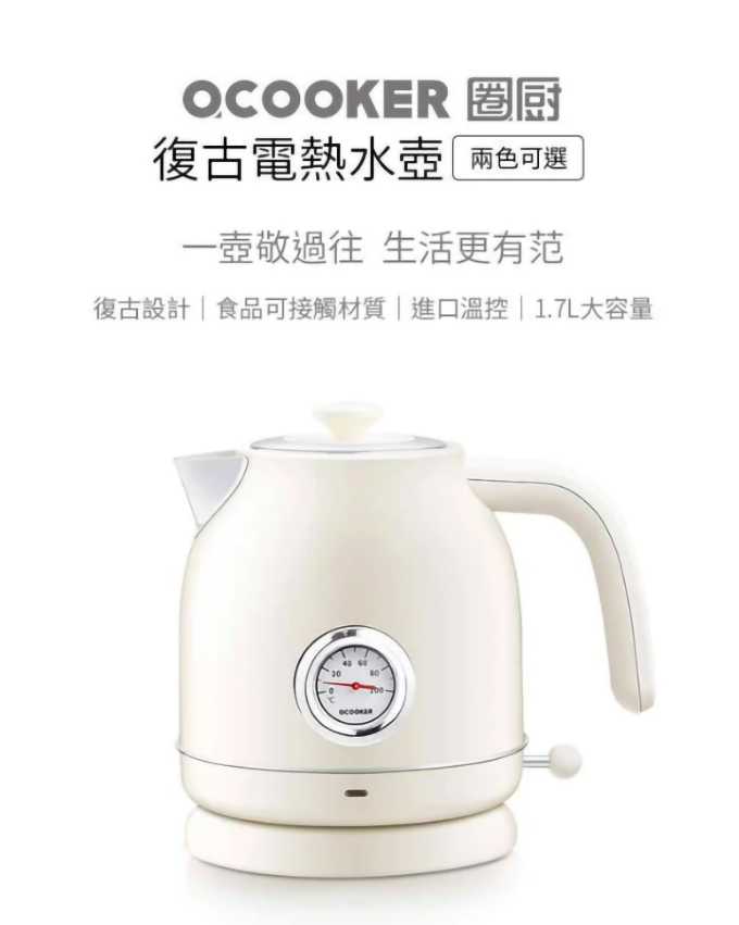 OCooker圈廚復古溫度錶電熱水壺1.7公升