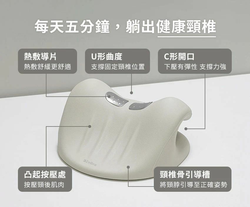 台灣品牌 3ZeBra 推出的頸椎熱敷牽引枕,日常生活或工作中難免避免姿勢不良的時候,