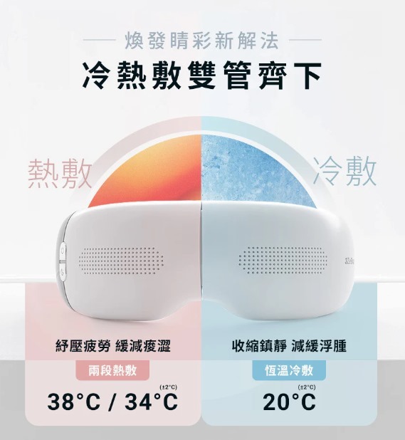 台灣3zebra推出冷熱敷眼部按摩器iCARE,冷敷低至20度,熱敷高達38度,有效減緩浮腫及緩減痠澀,共有7種模式選擇,配合多層氣囊設計,為雙眼帶來極致按摩體驗。iCARE的晶片位置設計在眼下,更有效舒緩眼睛。