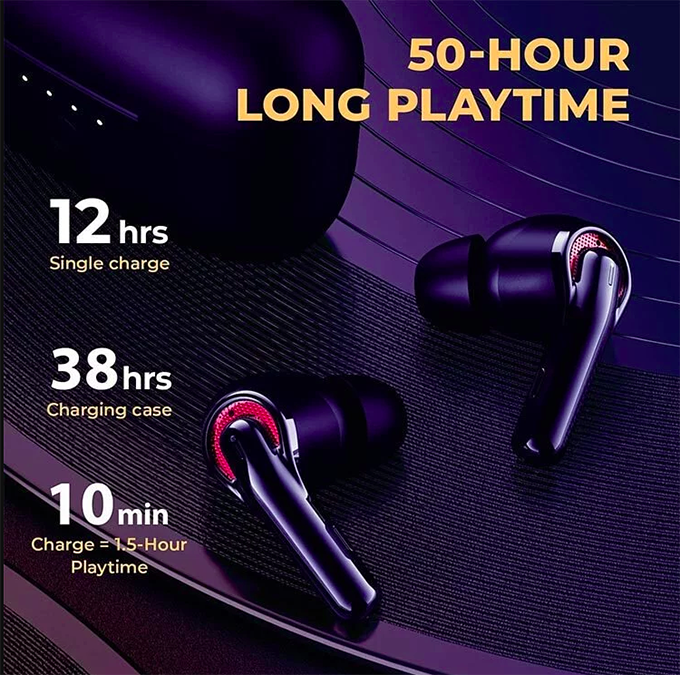 播放時間:使用充電盒可長達50小時,一次充電可播放12小時,充電盒可再充電4次